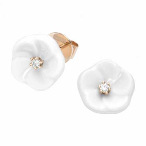 이 로즈골드 귀걸이는 왕관을 장식하는 최고급 다이아몬드와 섬세한 도자기 꽃들을 결합한 최초의 쥬얼리입니다.