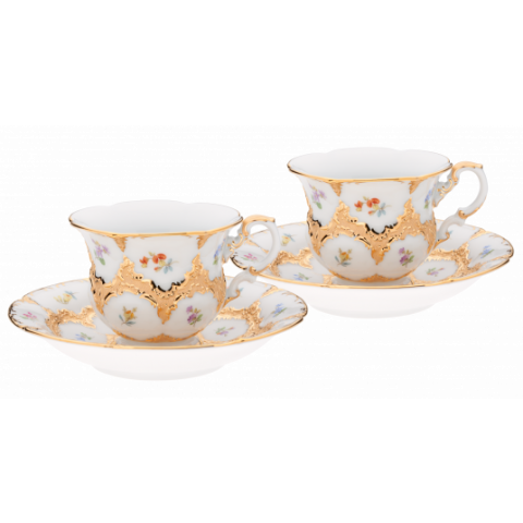 B-FORM 플라워 골드 커피 컵 앤 소서 2인조