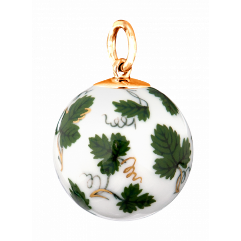 마이센 도자기로 만들어진 펜던트 “Boule Vine Leaves with Gold”는 유명한 덩굴 장식을 유약을 바르기 전에 채색하였으며 골드로 악센트를 주었습니다