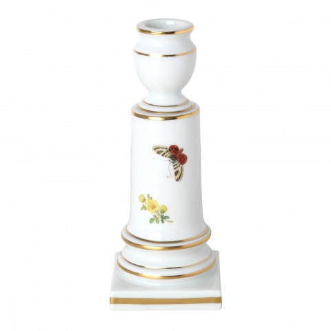 Candlestick, Shape "Neuer Ausschnitt", Naturalistic flowers, with butterfly, gold rim, H 14 cm