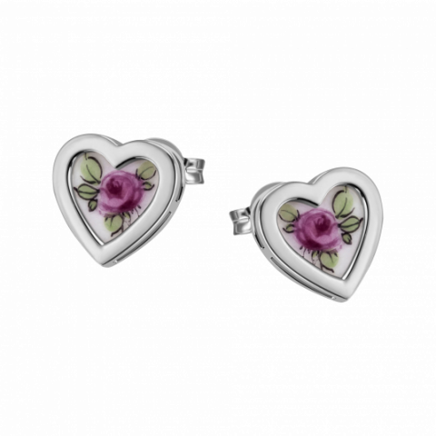 하트 모양의 도자기 귀걸이 스터드는 최고급 925 스털링 은으로 세팅되었으며