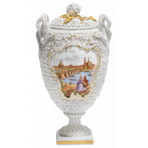 LIMITED MASTERWORKS 2019 SNOWBALL BLOSSOM VASE WITH CANALETTO VIEW OF DRESDEN