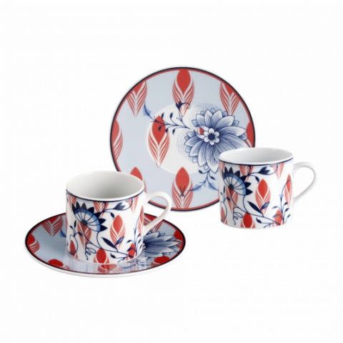 MEISSEN COLLAGE BLOOMY FEATHERS ESPRESSO CUP SET