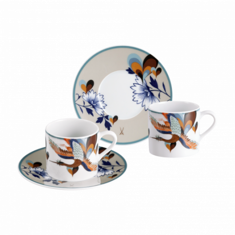 MEISSEN COLLAGE LOVE BIRDS ESPRESSO CUP SET