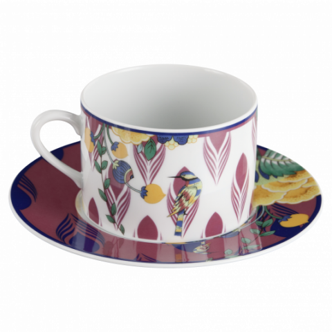 MEISSEN COLLAGE MYSTIC GARDEN CAPPUCCINO CUP WITH SAUCER