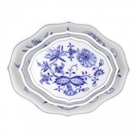 당시 주로 푸른색이 주를 이루던 동아시아의 패턴에서 영감을 얻은 Meissen의"Onion Pattern"은 1731년에 만들어져 전 세계적으로 유명해졌습니다. 이 패턴의 "Onion"은 실제로 양파가 아니라 가장자리의 복숭아와 멜론 중앙의 대나무 줄기 와 국화꽃입니다.
