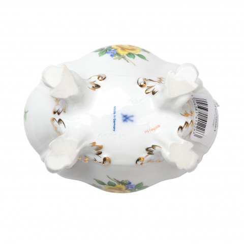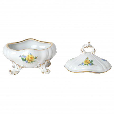 Tureen, Yellow rose and forget-me-nots, gold rim, 13 x 11cm