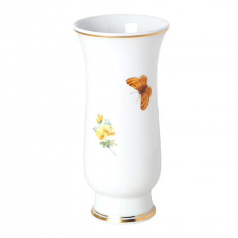 Vase, Naturalistic flowers, with butterfly, gold thread or band, H 14 cm
