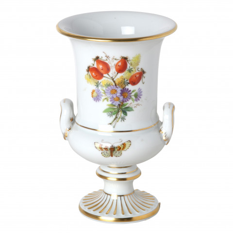 Vase, Naturalistic flowers, with butterfly