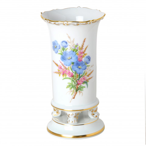 Vase, Shape "Neuer Ausschnitt", Naturalistic flowers, with butterfly, gold rim