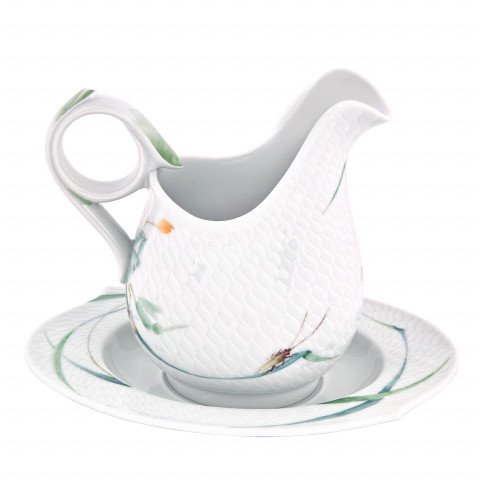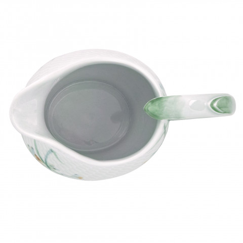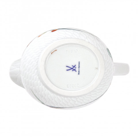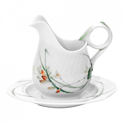 Meissen의 전통과 시리즈의 테마에 대한 찬사로 타 도자기 회사에서 제조하는 제품은 구부러진 주둥이와 뚜껑 손잡이가 새싹 디자인인 반면에 마이센의 컵, 주전자 및 크리머의 손잡이는 반지 모양으로 특징지어집니다.