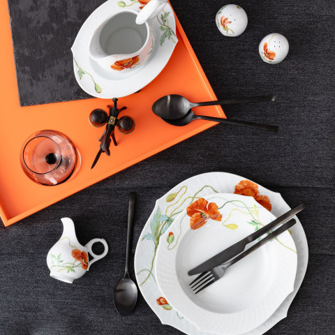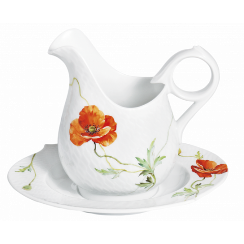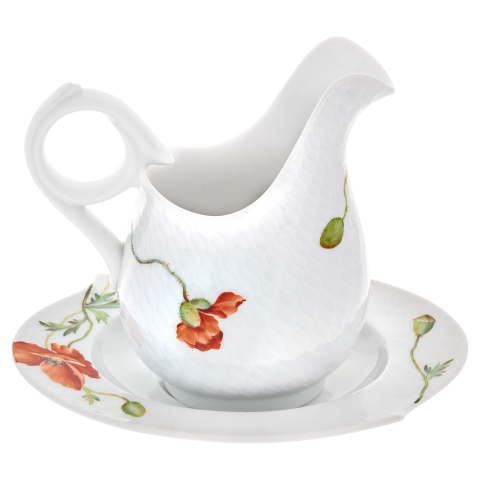 웨이브 릴리프모양의 그레이비 보트는 와일드 포피데코로 장식되어 있습니다.