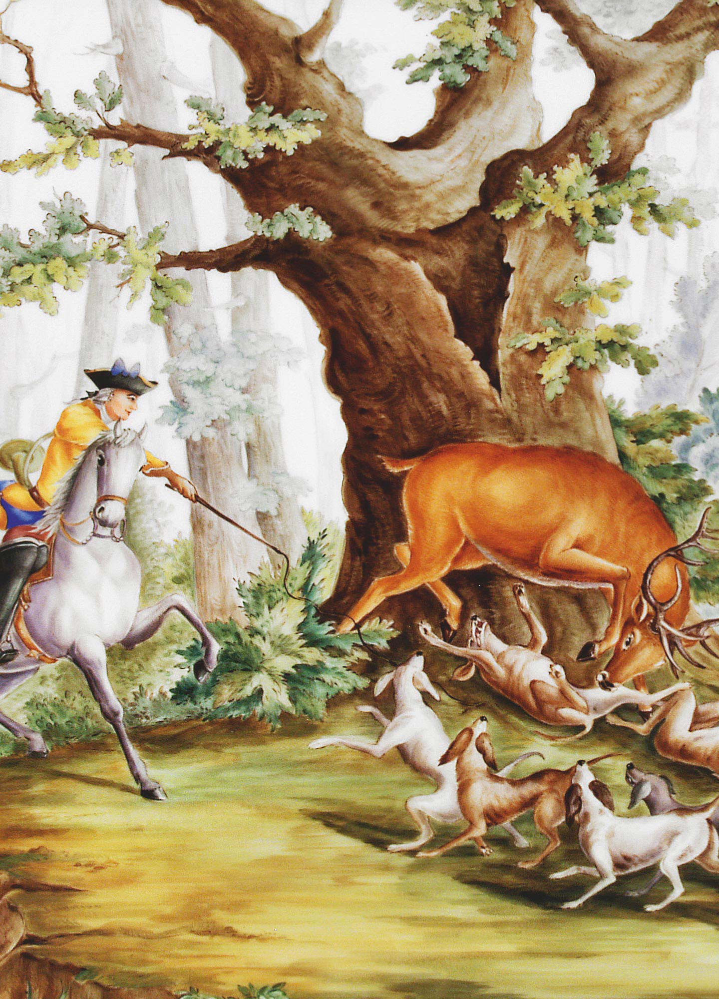 창립 직후 인 1722 년에 사냥 이미지가 마이센의 레퍼토리에 채택되었습니다. 동물과 사냥 모티프로 장식 된 화병,접시 및 트로피는 Augustus 대제의 여러곳의 사냥용 오두막집을 장식하는 데 사용되었습니다.